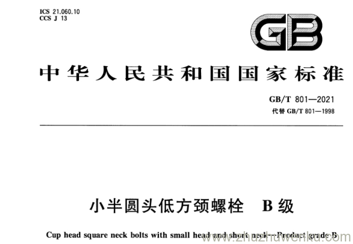 GB/T 801-2021 pdf下载 小半圆头低方颈螺栓 B级