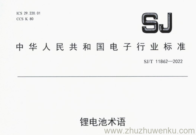 SJ/T 11862-2022 pdf下载 锂电池术语