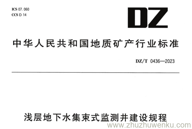 DZ/T 0436-2023 pdf下载 浅层地下水集束式监测井建设规程