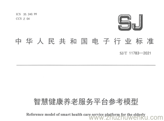 SJ/T 11783-2021 pdf下载 智慧健康养老服务平台参考模型