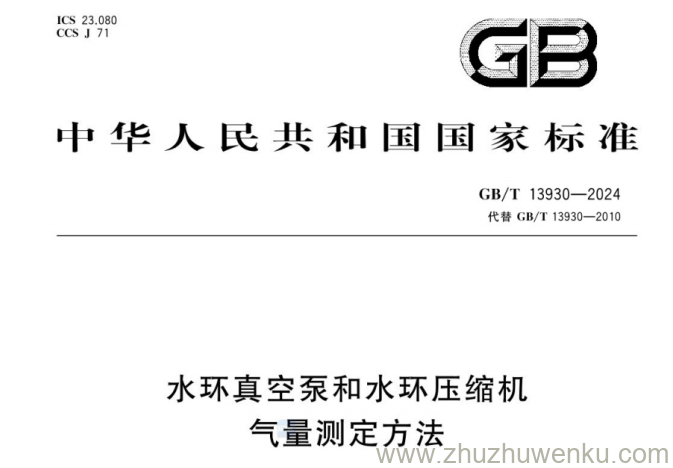 GB/T 13930-2024 pdf下载 水环真空泵和水环压缩机 气量测定方法