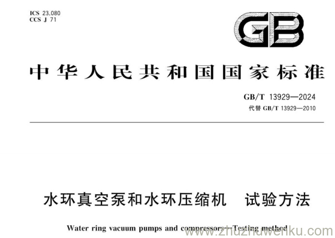 GB/T 13929-2024 pdf下载 水环真空泵和水环压缩机 试验方法