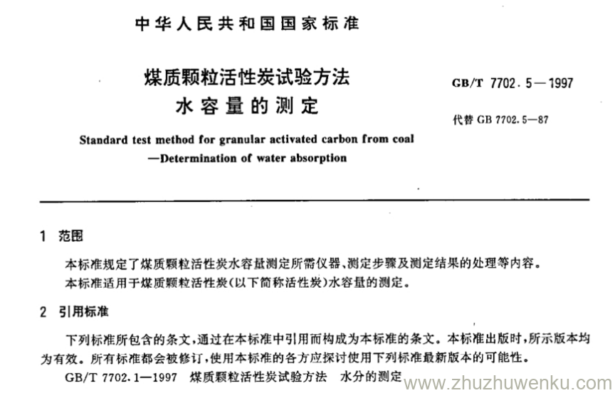 GB/T 7702.5-1997 pdf下载 煤质颗粒活性炭试验方法水容量的测定