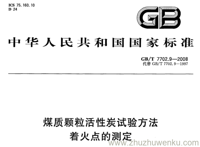 GB/T 7702.9-2008 pdf下载 煤质颗粒活性炭试验方法 着火点的测定