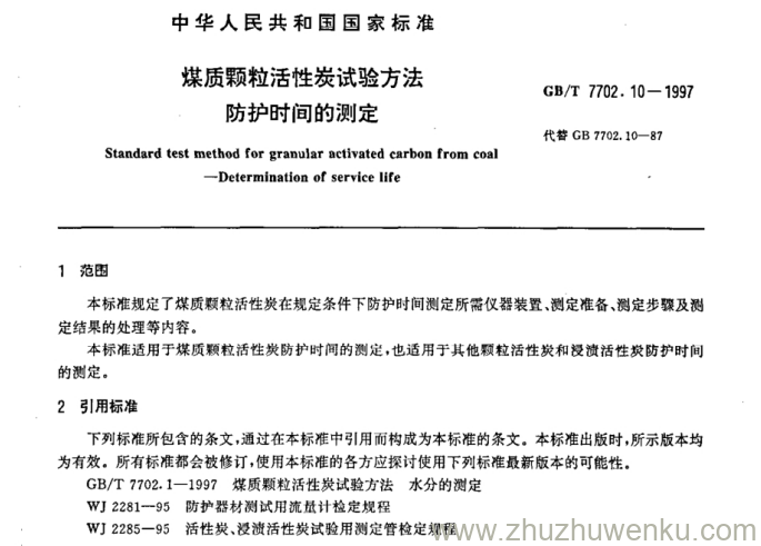 GB/T 7702.10-1997 pdf下载 煤质颗粒活性炭试验方法 防护时间的测定