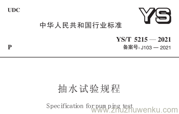 YS/T 5215-2021 pdf下载 抽水试验规程