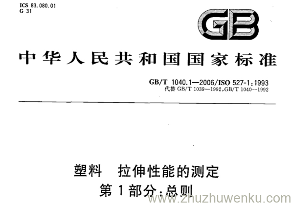 GB/T 1040.1-2006 pdf下载 塑料 拉伸性能的测定 第1部分:总则