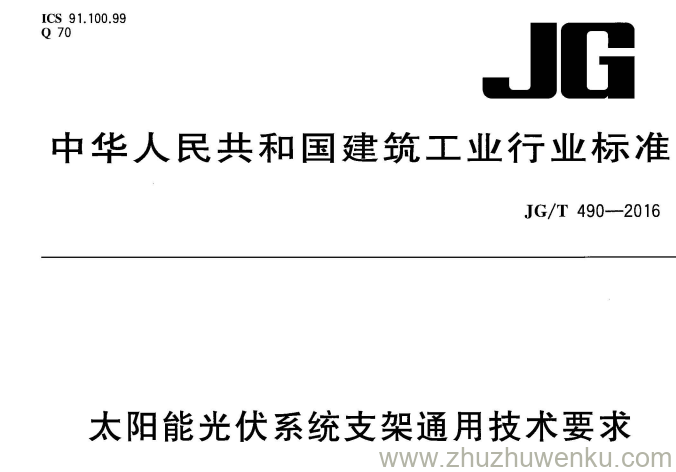 JG/T 490-2016 pdf下载 太阳能光伏系统支架通用技术要求
