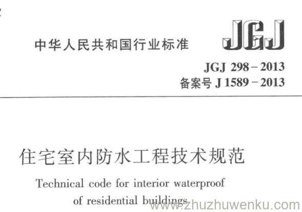 JGJ 298-2013 pdf下载 住宅室内防水工程技术规范