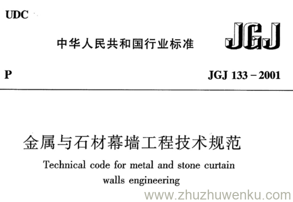 JGJ 133-2001 pdf下载 金属与石材幕墙工程技术规范