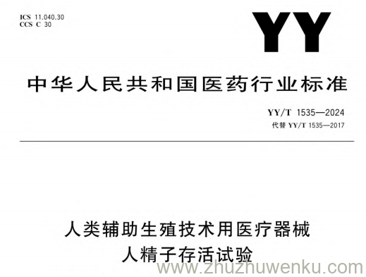 YY/T 1535-2024 pdf下载 人类辅助生殖技术用医疗器械 人精子存活试验