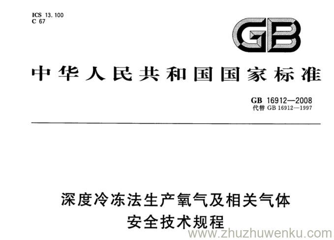 GB 16912-2008 pdf下载 深度冷冻法生产氧气及相关气体安全技术规程