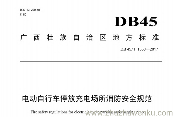 DB 45/T 1553-2017pdf下载 电动自行车停放充电场所消防安全规范