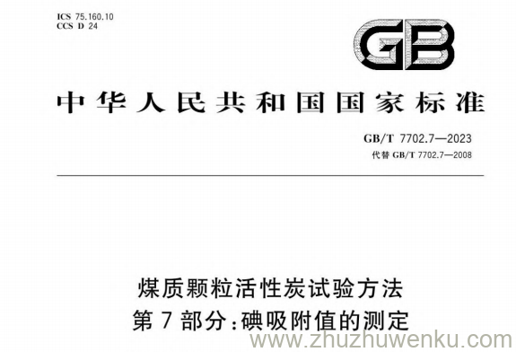 GB/T 7702.7-2023 pdf下载 煤质颗粒活性炭试验方法 第7部分:碘吸附值的测定