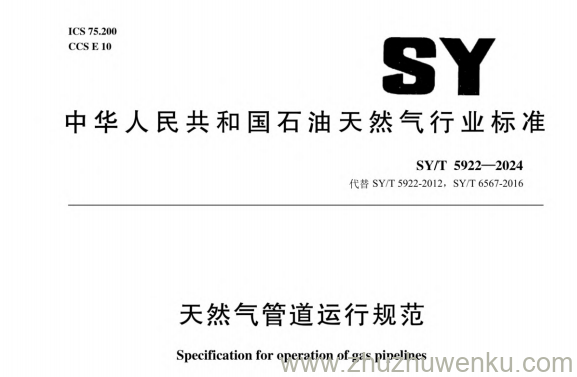 SY/T 5922-2024 pdf下载 天然气管道运行规范