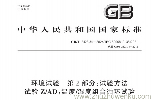 GB/T 2423.34-2024 pdf下载 环境试验 第2部分:试验方法 试验Z/AD:温度/湿度组合循环试验