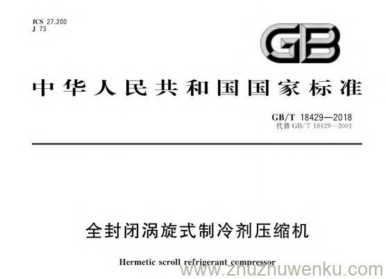 GB/T 18429-2018 pdf下载 全封闭涡旋式制冷剂压缩机
