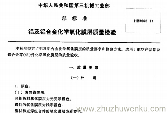 HB 5060-1977 pdf下载 铝及铝合金化学氧化膜层质量检验