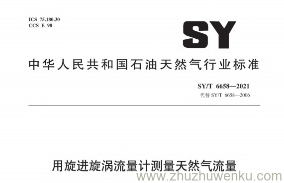 SY/T 6658-2021 pdf下载 用旋进旋涡流量计测量天然气流量