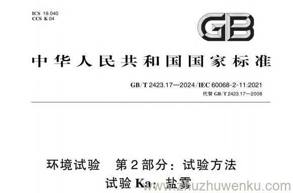 GB/T 2423.17-2024 pdf下载 环境试验 第2部分:试验方法 试验Ka:盐雾