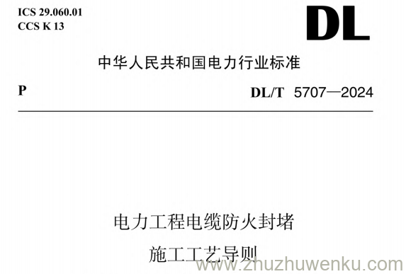 DL/T 5707-2024 pdf下载 电力工程电缆防火封堵施工工艺导则