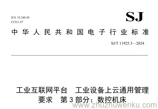 SJ/T 11925.3-2024 pdf下载 工业互联网平台 工业设备上云通用管理要求 第3部分:数控机床