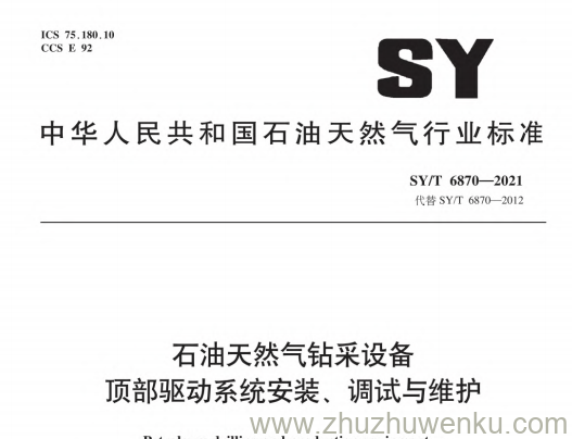 SY/T 6870-2021 pdf下载 石油天然气钻采设备 顶部驱动系统安装、调试与维护