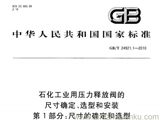 GB/T 24921.1-2010 pdf下载 石化工业用压力释放阀的尺寸确定、选型和安装 第1部分_尺寸的确定和选型