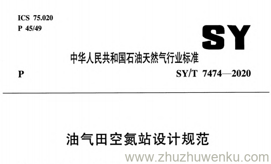 SY/T 7474-2020 pdf下载 油气田空氮站设计规范