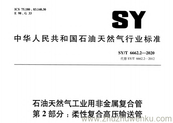 SY/T 6662.2-2020 pdf下载 石油天然气工业用非金属复合管 第2部分:柔性复合高压输送管