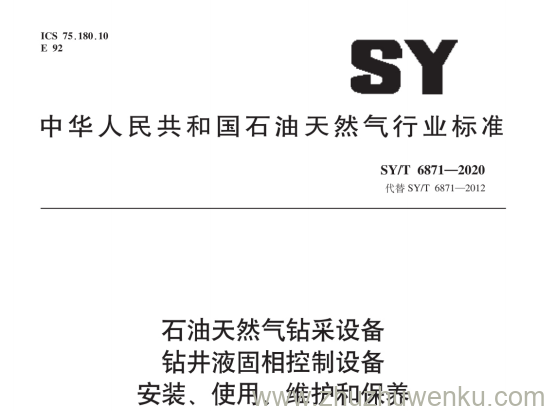 SY/T 6871-2020 pdf下载 石油天然气钻采设备钻井液固相控制设备安装、使用、维护和保养