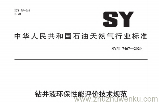 SY/T 7467-2020 pdf下载 钻井液环保性能评价技术规范