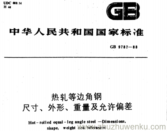 GB 9787-1988 pdf下载 热轧等边角钢 尺寸、外形、重量及允许偏差
