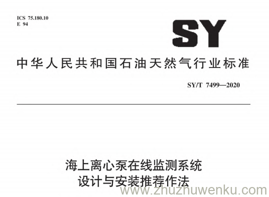SY/T 7499-2020 pdf下载 海上离心泵在线监测系统设计与安装推荐作法