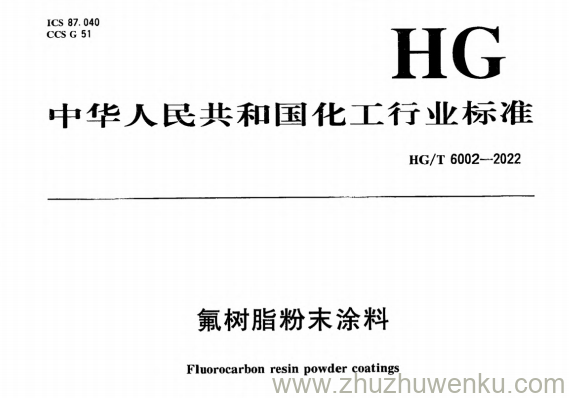HG/T 6002-2022 pdf下载 氟树脂粉末涂料