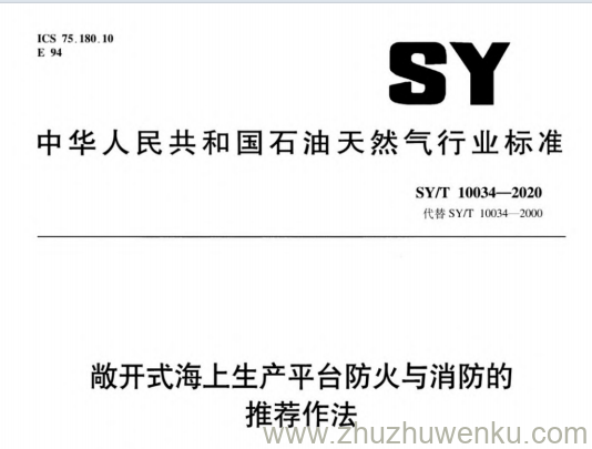 SY/T 10034-2020 pdf下载 敞开式海上生产平台防火与消防的推荐作法