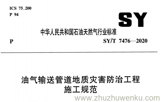 SY/T 7476-2020 pdf下载 油气输送管道地质灾害防治工程施工规范