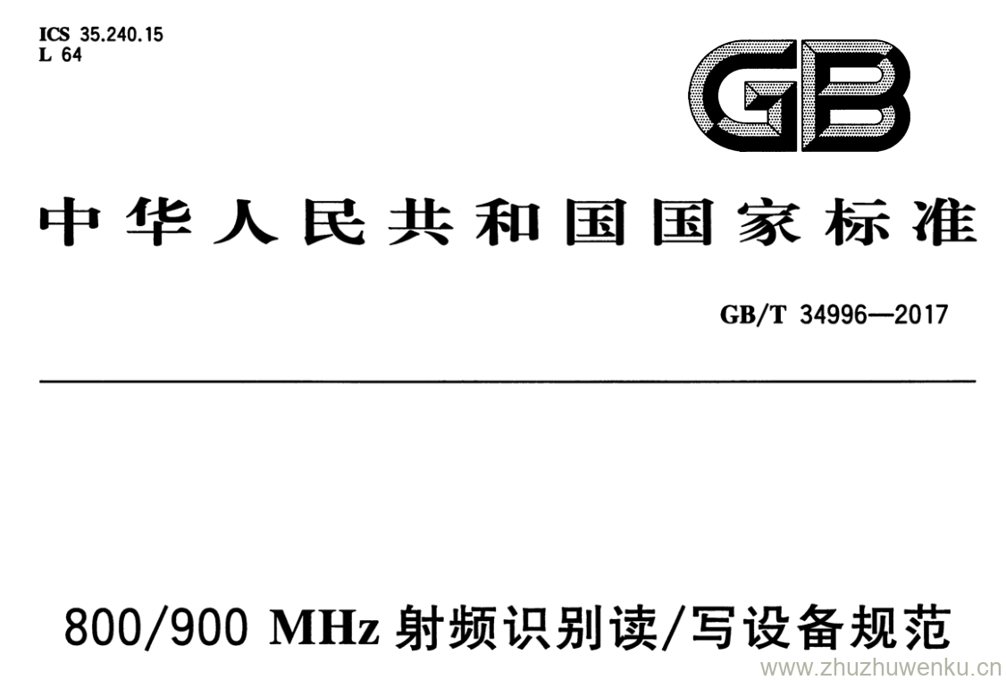 GB/T 34996-2017 pdf下载 800/900 MHz 射频识别读/写设备规范