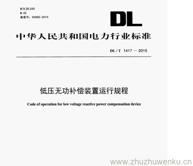 DL/T 1417-2015 pdf下载 低压无功补偿装置运行规程。Codeofoperation for low voltage reactive power compensation device.
