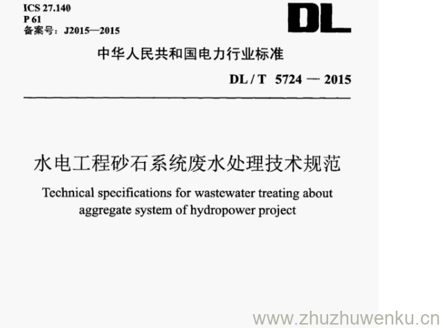 DL/T 5724-2015 pdf下载 水电工程砂石系统废水处理技术规范。Technical specifications for wastewater treating about aggregate system of hydropower project.