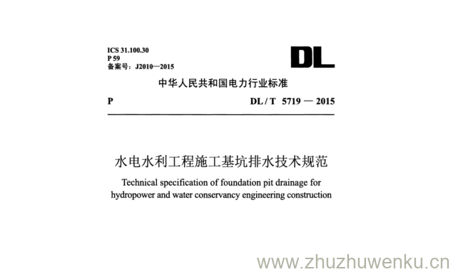 DL/T 5719-2015 pdf下载 水电水利工程施工基坑排水技术规范。Technical specification of foundation pit drainage for hydropower and water conservancy engineering construction.
