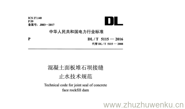 DL/T 5115-2016 pdf下载 混凝土面板堆石坝接缝 止水技术规范。Technical code for joint seal of concrete face rockfill dam.
