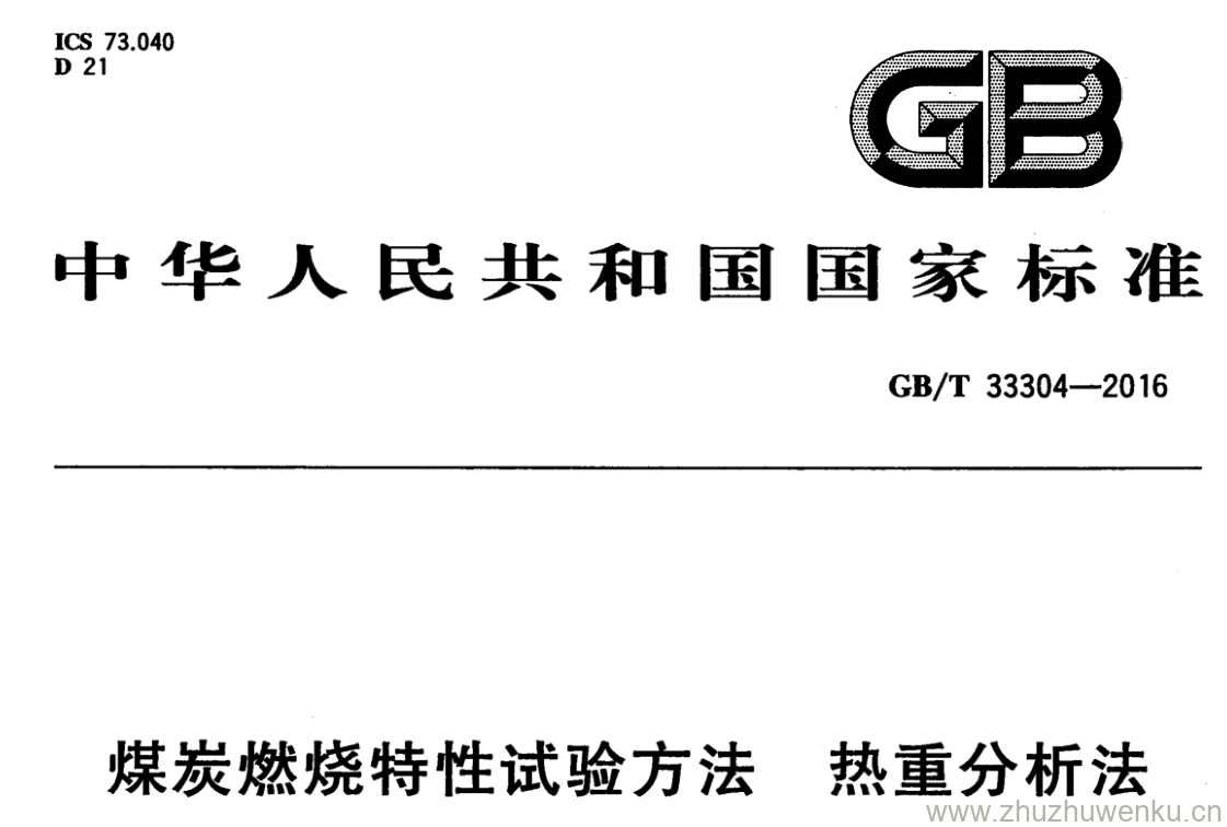 GB/T 33304-2016 pdf下载 煤炭燃烧特性试验方法 热重分析法