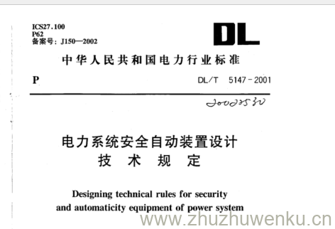 DL/T 5147-2001 pdf下载 电力系统安全自动装置设计 技术规定。Designing technical rules for security and automaticity equipment of power system.