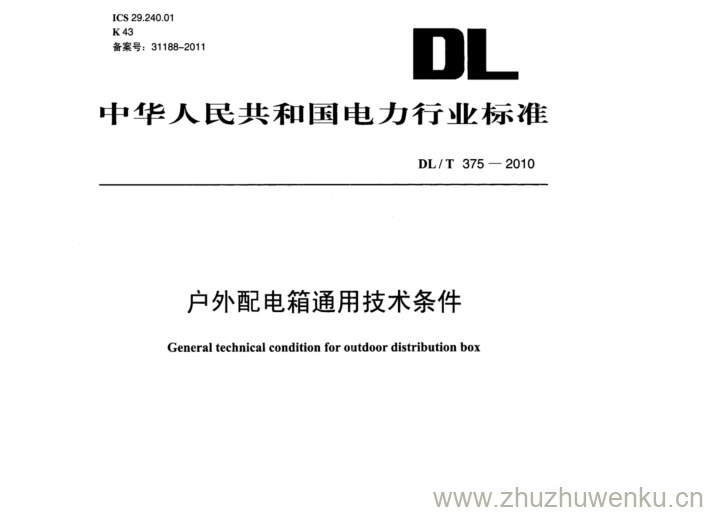 DL/T 375-2010 pdf下载 户外配电箱通用技术条件。