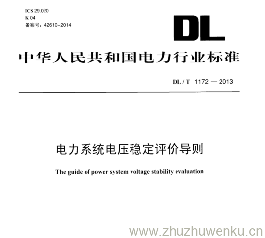 DL/T 1172-2013 pdf下载 电力系统电压稳定评价导则。The guide of power system voltage stability evaluation.
