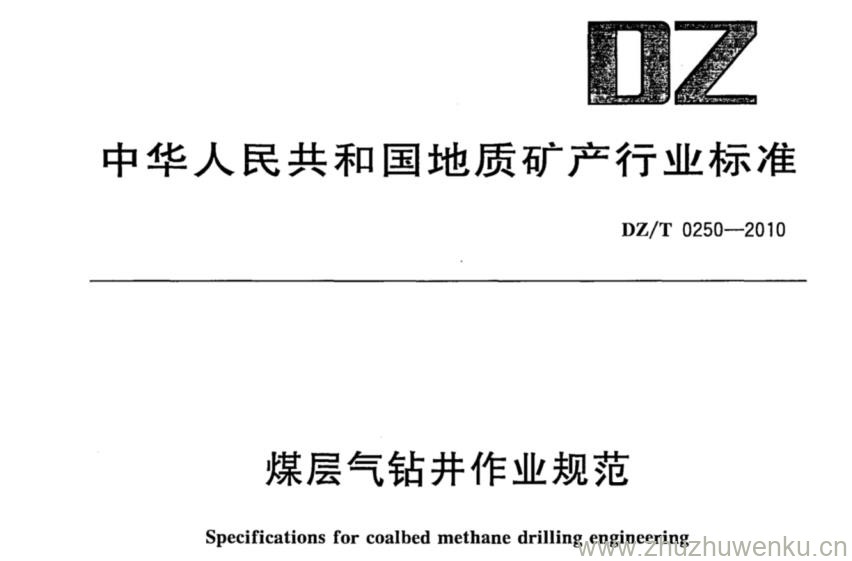 DZ/T 0250-2010 pdf下载 煤层气钻井作业规范。Specifications for coalbed methane drilling engineering.
