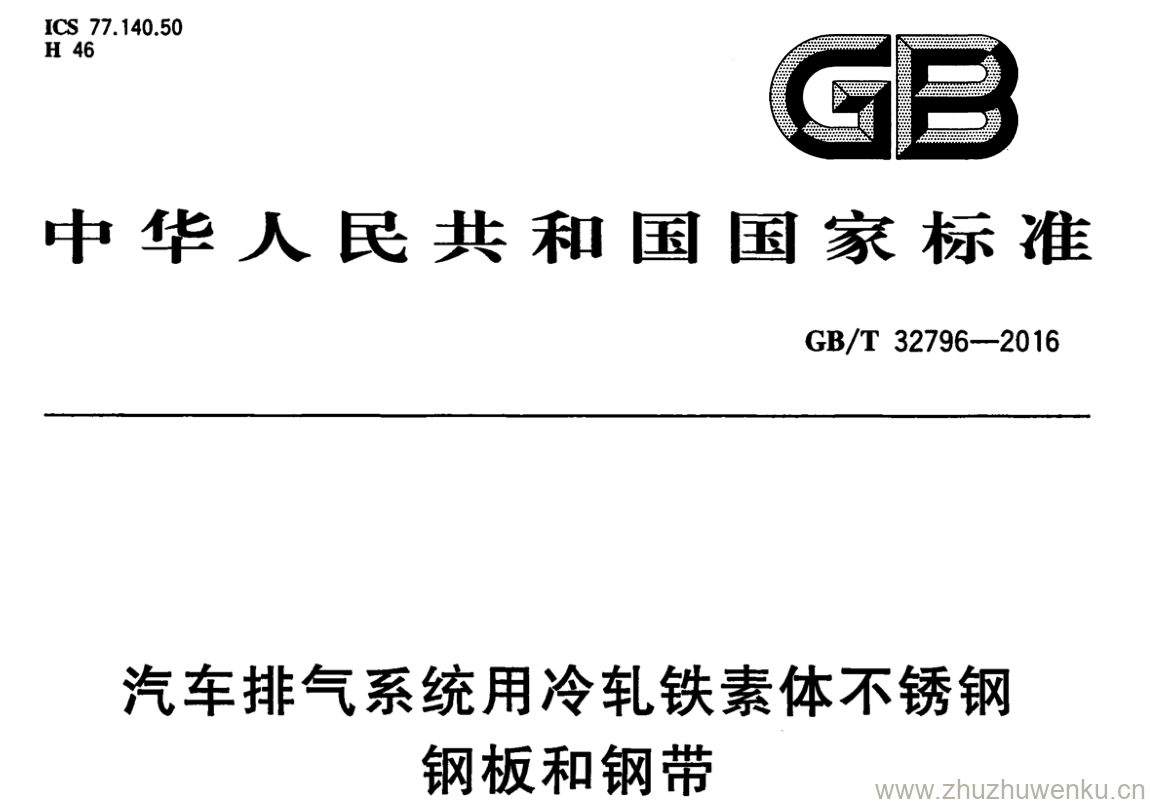 GB/T 32796-2016 pdf下载 汽车排气系统用冷轧铁素体不锈钢钢板和钢带