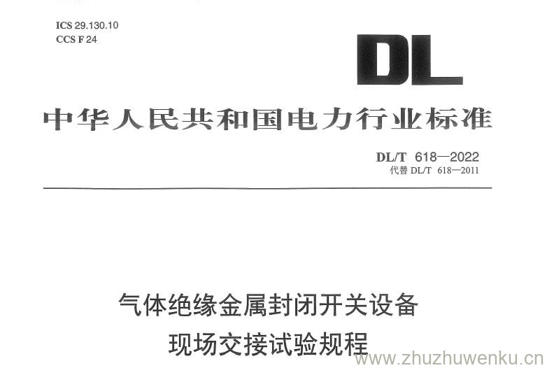 DL/T 618-2022 pdf下载 气体绝缘金属封闭开关设备现场交接试验规程