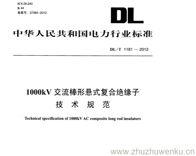 DL/T 1181-2012 pdf下载 1000kV 交流棒形悬式复合绝缘子 技术规范。Technical specification of 1000kV AC composite long rod insulators.